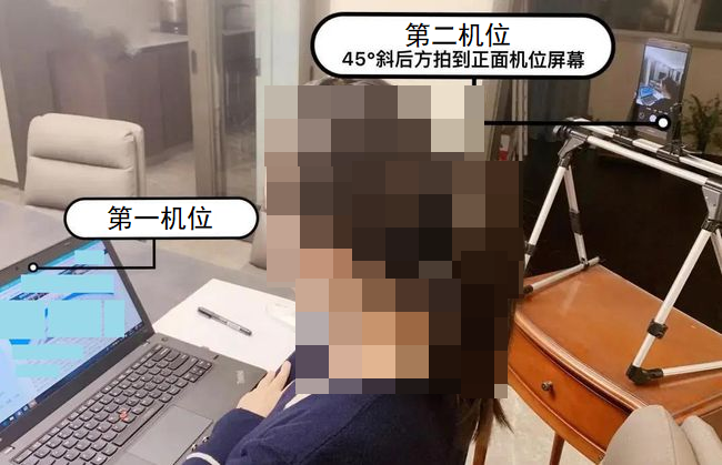 远程复试考核采用双机位。考生须准备一台笔记本电脑(带摄像头、麦克风)或一台台式电脑(外置摄像头、麦克风及音响),和一部智能手机(第二机位使用),保证设备电量充足,存储空间充足,;也可准备两部智能手机(一部第一机位,一部第二机位)。“第一机位”用于采集考生音、视频源(考生正前方),建议使用笔记本电脑或者台式机,不推荐使用手机。“第二机位”用于采集考生所处的环境(考生远端,侧方或者后方),要开启静音模式,要求能够监控考生的周边情况以及“第一机位”显示器的音、视频源,建议使用手机。第一机位和第二机位视野交叉形成360度监控视野。