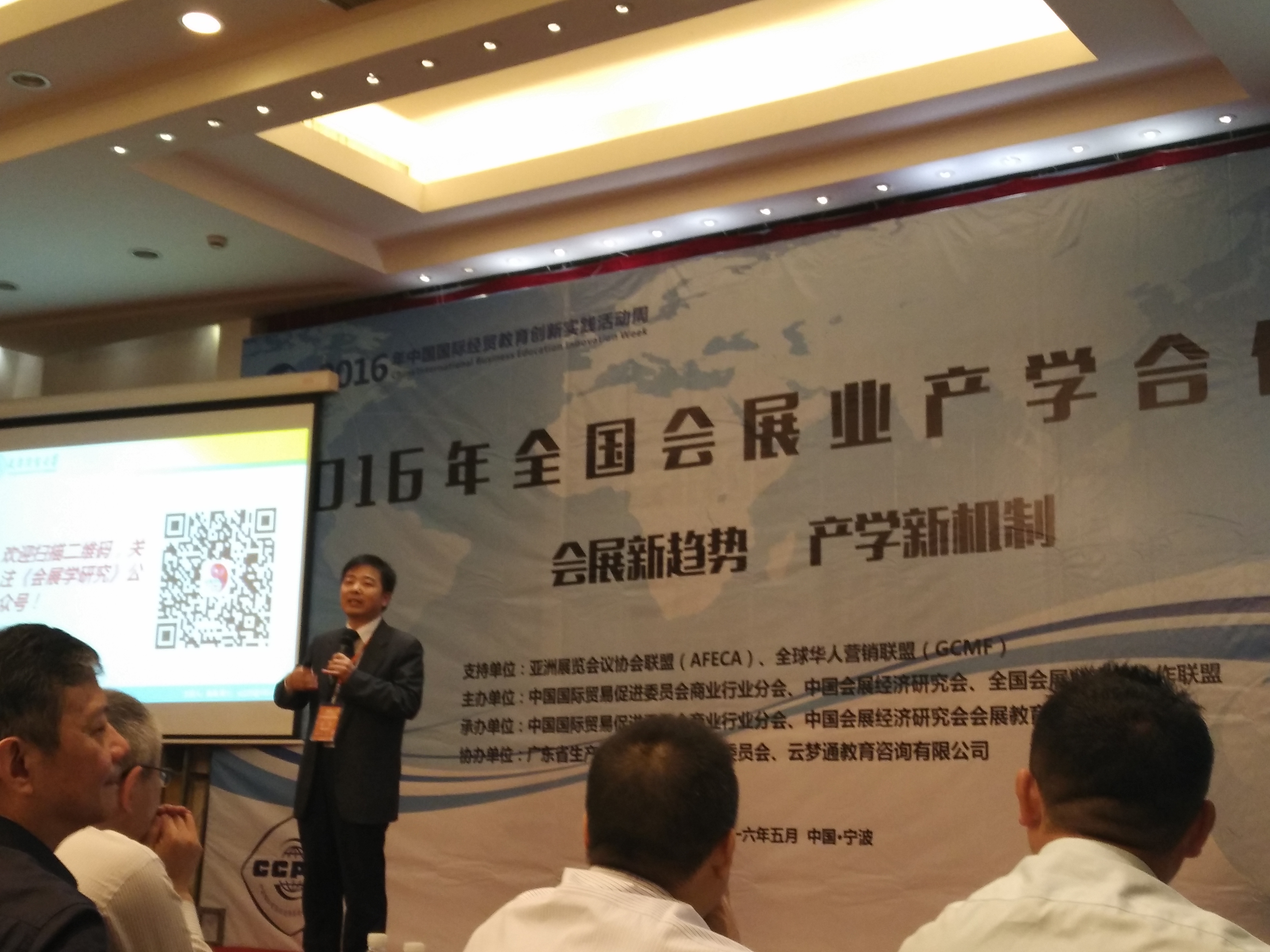5月26-28日,mobile28365经理李增田、会展经济与管理系党支部书记赵伯艳、会展研究所所长杨琪、系教学秘书杜凤霞,在浙江宁波参加2016年全国会展业产学合作论坛暨全国会展业产学合作联盟年会,并参观访问了浙江万里公司会展专业,观摩了全国高校商业精英挑战赛经贸会展创新实践竞赛。