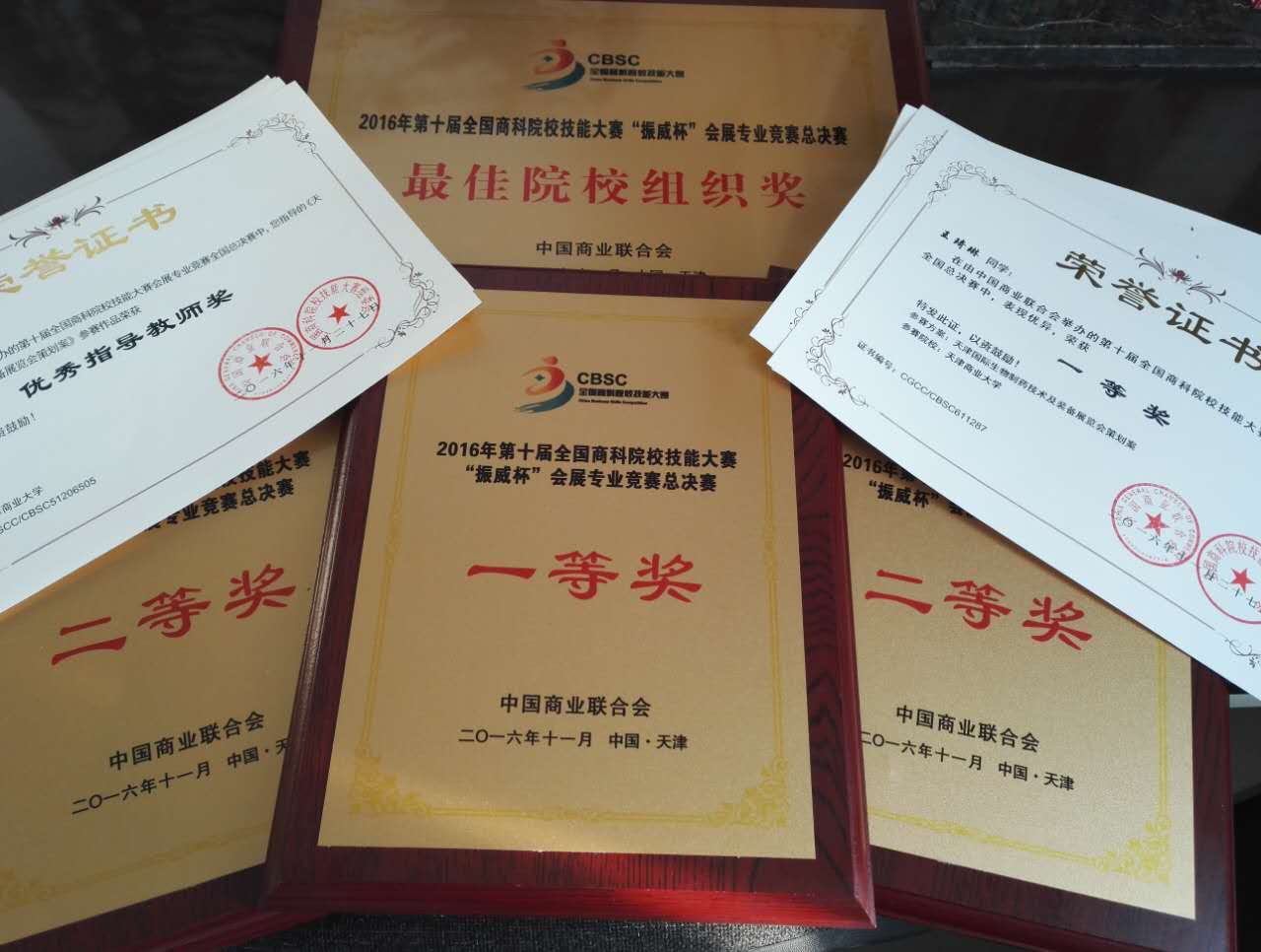 mobile28365会展经济与管理专业的三支队伍在文案评审、项目陈述以及答辩环节上表现出色,杜志刚老师指导的王琦琳、安琪、刘嘉婧、李一漪、韦健芳团队的《天津国际生物制药技术及装备展览会策划案》获得一等奖,王利刚老师指导的侯斌、李廷辉、刘思涵、陈丹、毋嘉敏团队的《天津国际跨境电商与金融支付系统展览会策划案》和杜凤霞、杨琪老师指导的黄星元、刘浩阳、杜牛乾、王浩然、徐晨凯团队的《第八届中国(天津滨海)国际生态城市论坛暨博览会策划案》分别获得二等奖。同时,公司还获得了“最佳院校组织奖”,四位指导老师均荣获“优秀指导教师奖”。