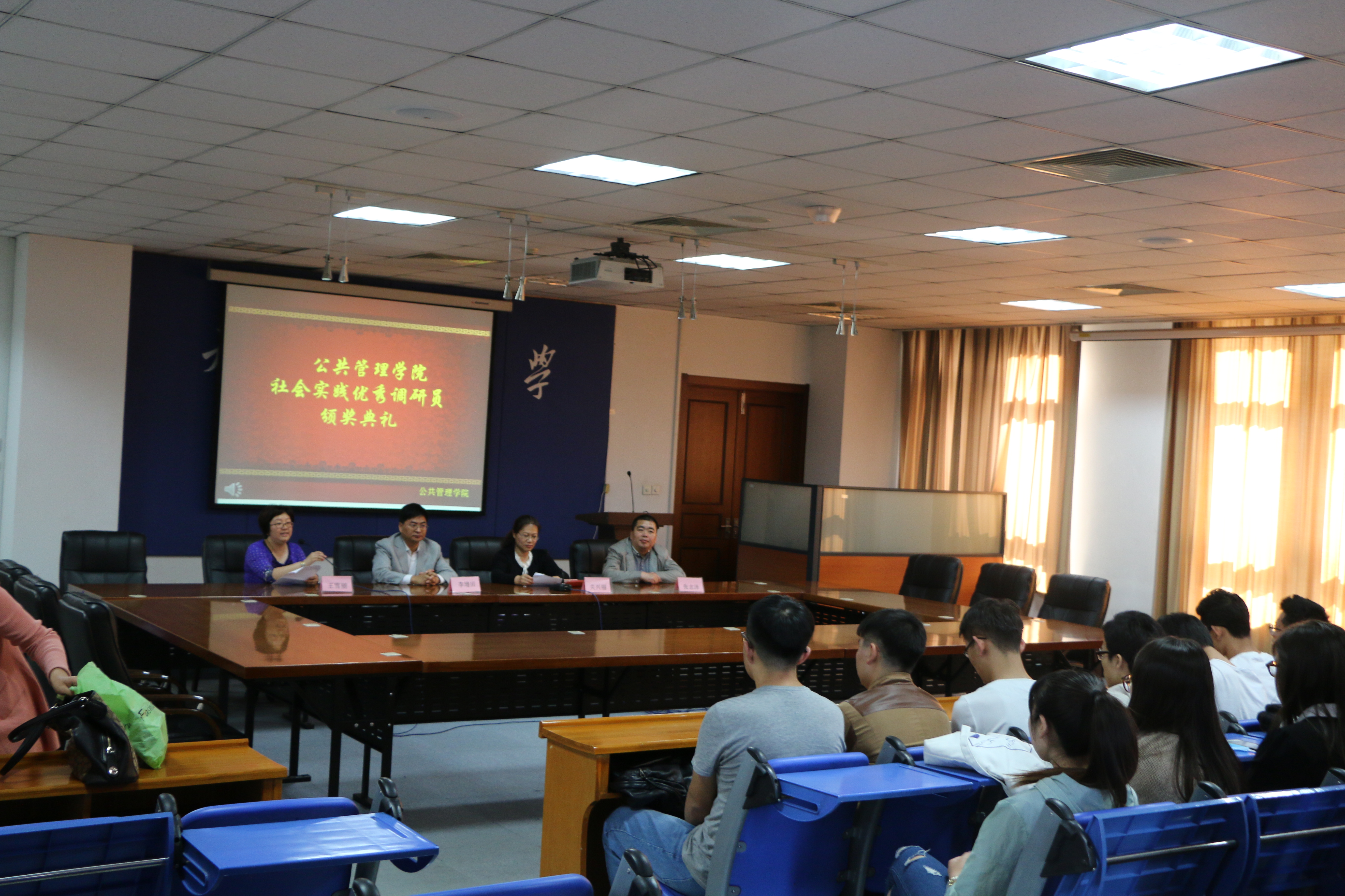 行政管理专业13级员工先后参与了“天津市政府部门绩效考核民意调查项目”和“中国地方政府发展能力指数调研项目”的数据采集和社会调研工作,受到了有关单位的一致好评。天津市统计局和南开大学中国政府与政策联合研究中心分别评出20位在实践调研活动中表现突出的员工,并予以奖励。邹智勇代表获奖同学发表了获奖感言,分享了参加社会实践调研的感受及收获。