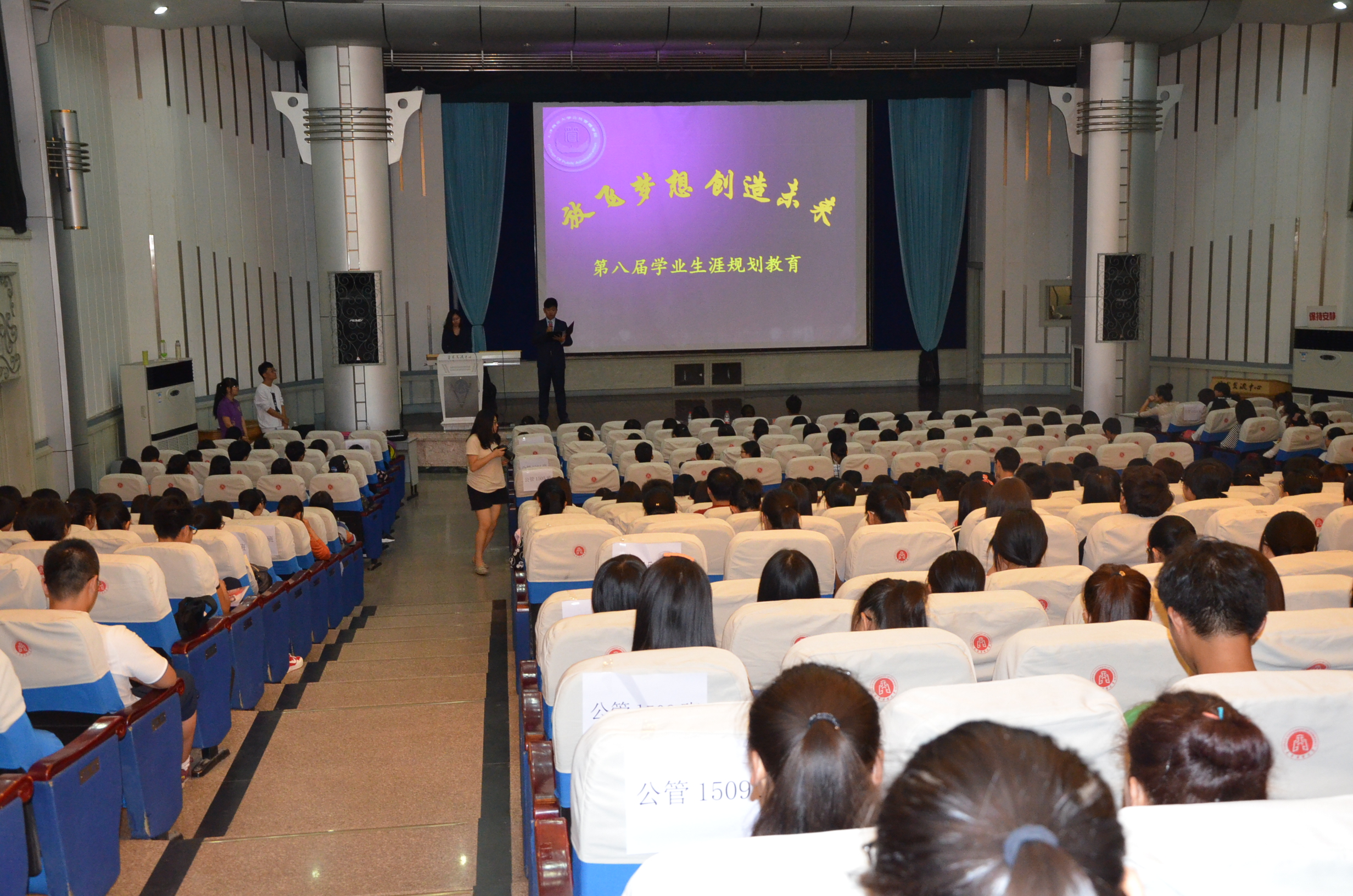 2015年9月23日,mobile28365在学术交流中心举办“放飞梦想,创造未来”第八届新生学业生涯规划教育讲座暨生涯规划比赛宣讲会。mobile28365团委书记沈洁老师,员工成长促进协会公关部部长刘牛,优秀员工代表曹阳出席,2014级优秀作品获奖者以及2015级全体员工参加讲座。