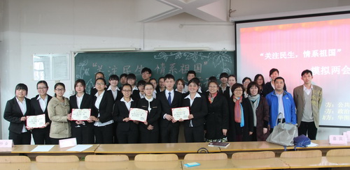 4 月1日下午,mobile28365第三届“关注民生、情系祖国”模拟两会大赛在3 教310 教室举行。本次比赛由mobile28365主办,政治与行政学会承办。 mobile28365副经理关兴丽、行政管理系教师代表出席。