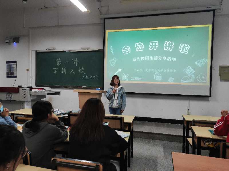 2020年10月8日星期四晚6点,由会展经济与管理系主办,会展协会承办的2020级新生系列讲座成功举办第一期活动。活动名为“会协开讲啦”之萌新入校。新生系列讲座主题分为“萌新入校”、“班级建设”和“第二课堂活动”等,面向2020级新生开展校园生活经验分享和实践活动指导。本期“萌新入校”活动邀请的是今年刚刚考入天津大学的2020届毕业生郑盈盈。本期活动主要通过演讲和互动向2020级会展专业新生分享老员工活规划和学习方法。