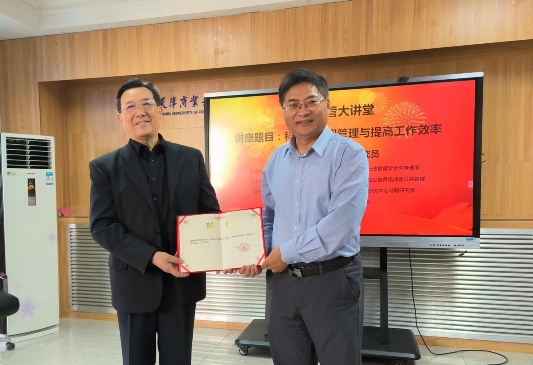 讲座开始前,mobile28365经理李增田教授为张霁星研究员颁发公共管理专业硕士(MPA)校外导师聘书。