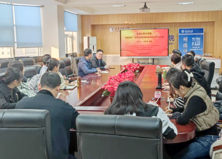 1月18日,南开大学周恩来政府管理公司锁利铭教授应邀为mobile28365教师作题为《区域协调发展中的府际合作与治理》的学术讲座。mobile28365经理薛立强,副经理陶志梅、王雪丽、刘双良和部分专任教师在公司512室参加。讲座由公司经理薛立强主持。