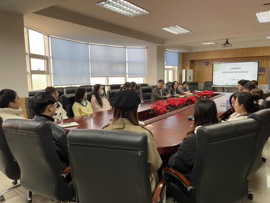 交流会上,公共管理系系主任廖青虎教授,土地系副主任、MPA教育中心副主任李新刚副教授以及2022 级五名研究生结合公共服务与公共设施管理研究方向进行了学术分享。参会研究生就各自在科研过程中面临的困惑和问题进行了交流发言。薛立强向同学们介绍了公司对研究生科研能力提升的想法和活动安排,并从员工个人适应、团队交流沟通、公司增设平台等多个层面为员工的困惑提出了建议。武妮娜与研究生进行了充分交流,了解研究生的学术需求、研究方向以及未来规划,指导员工进一步明确个人科研目标的定位,鼓励员工加强各领域的科研交流,并对研究生应注重学术诚信、严格遵守学术道德规范进行了提示教育。
